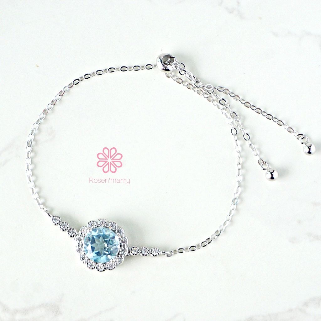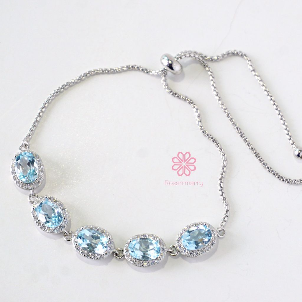 Natural Blue Topaz Bracelet Sterling Silver925 With White gold Plated.