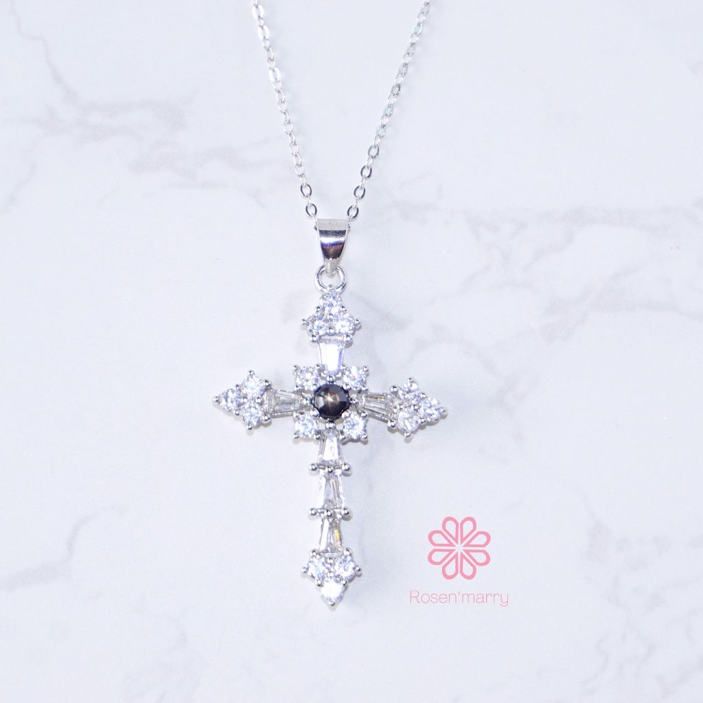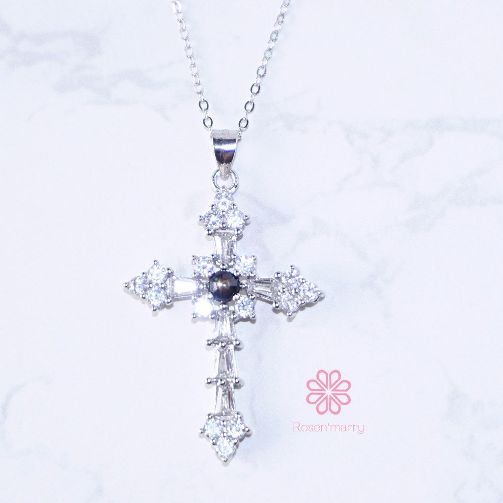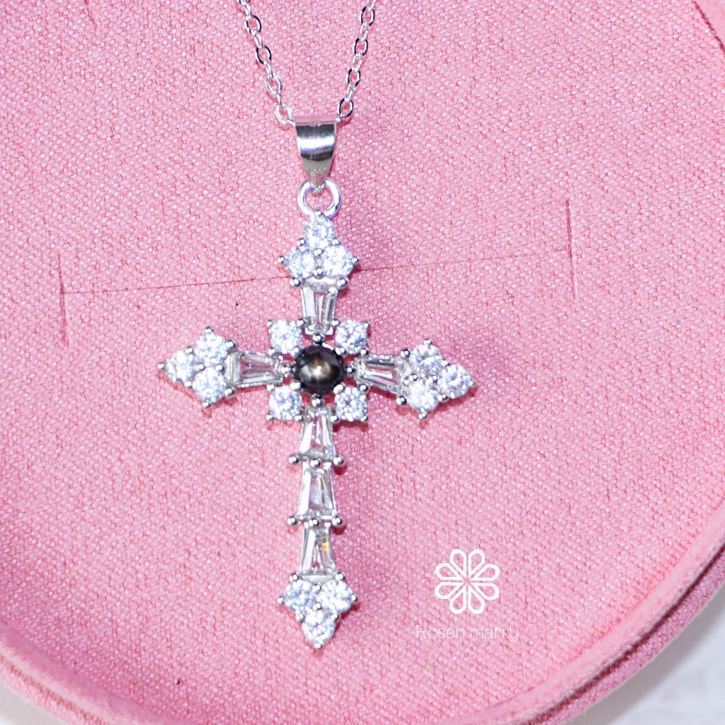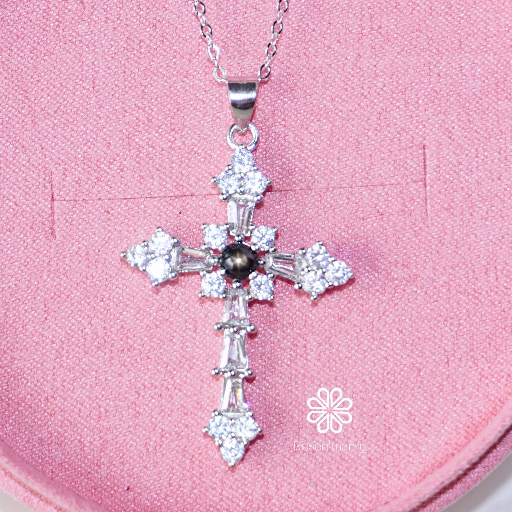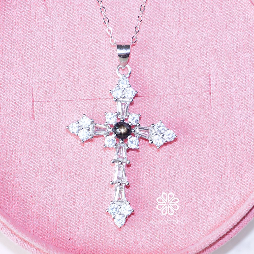 Natural Black Star Sapphire Pendant and Necklace Sterling Silver925.