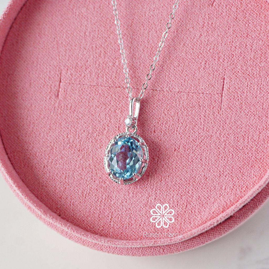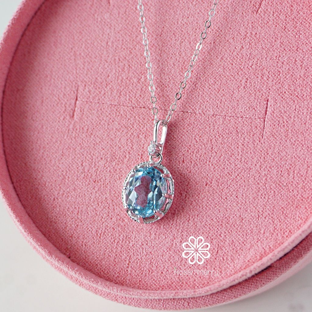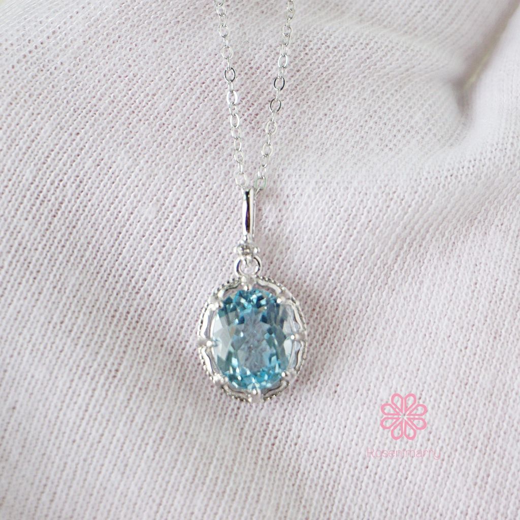 Natural Blue Topaz Pendant and Necklace Sterling Silver925.