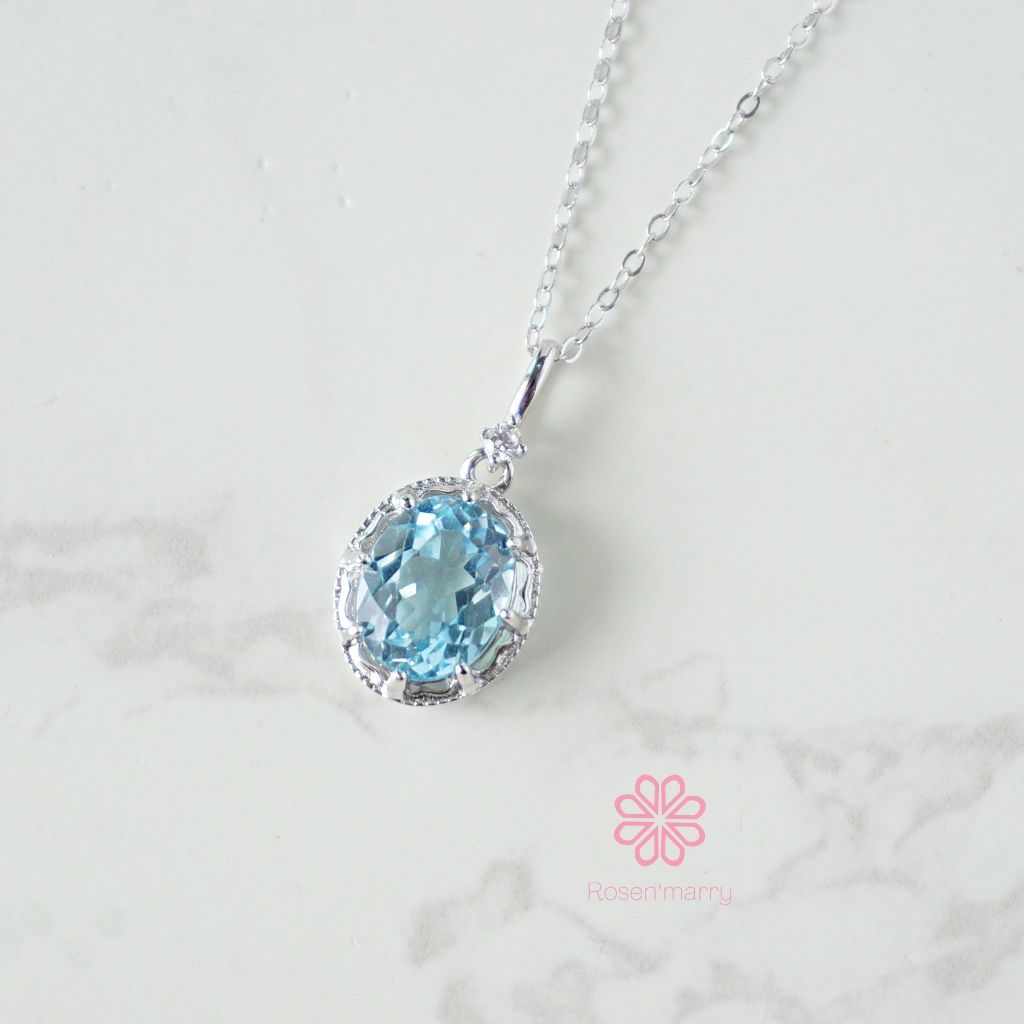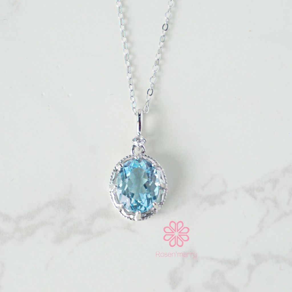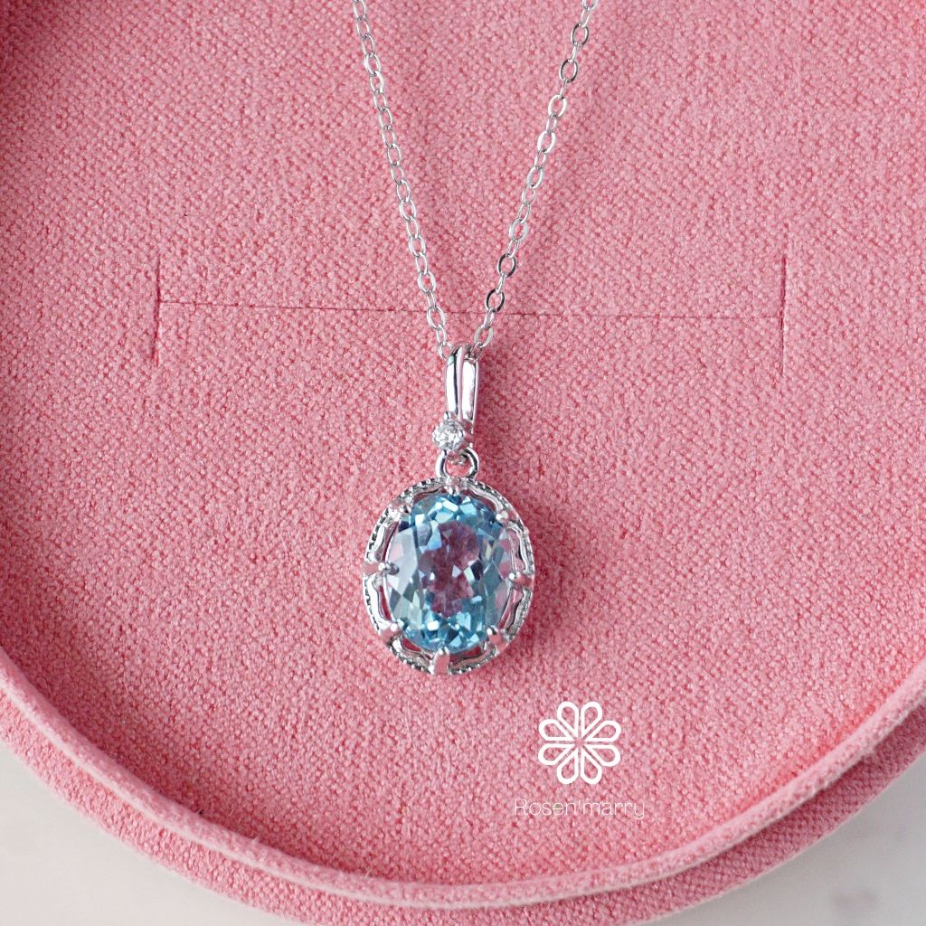 Natural Blue Topaz Pendant and Necklace Sterling Silver925.