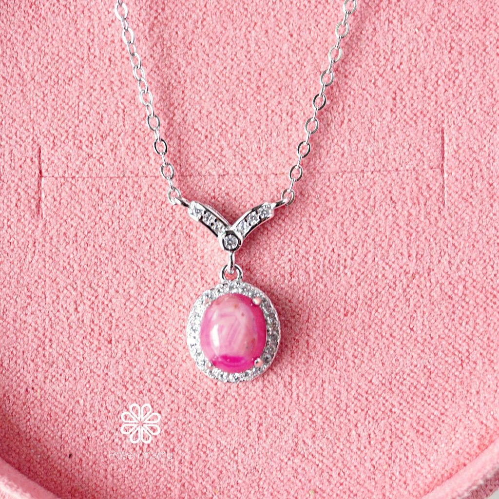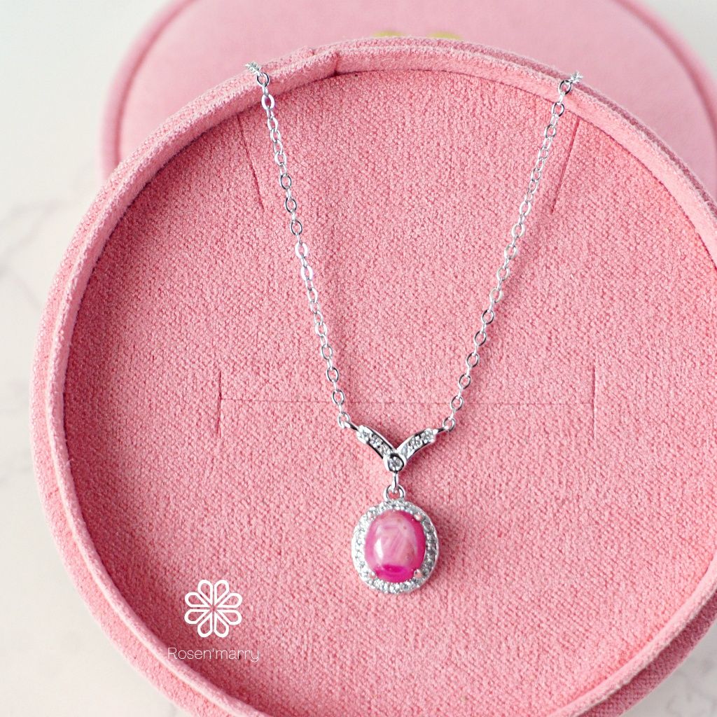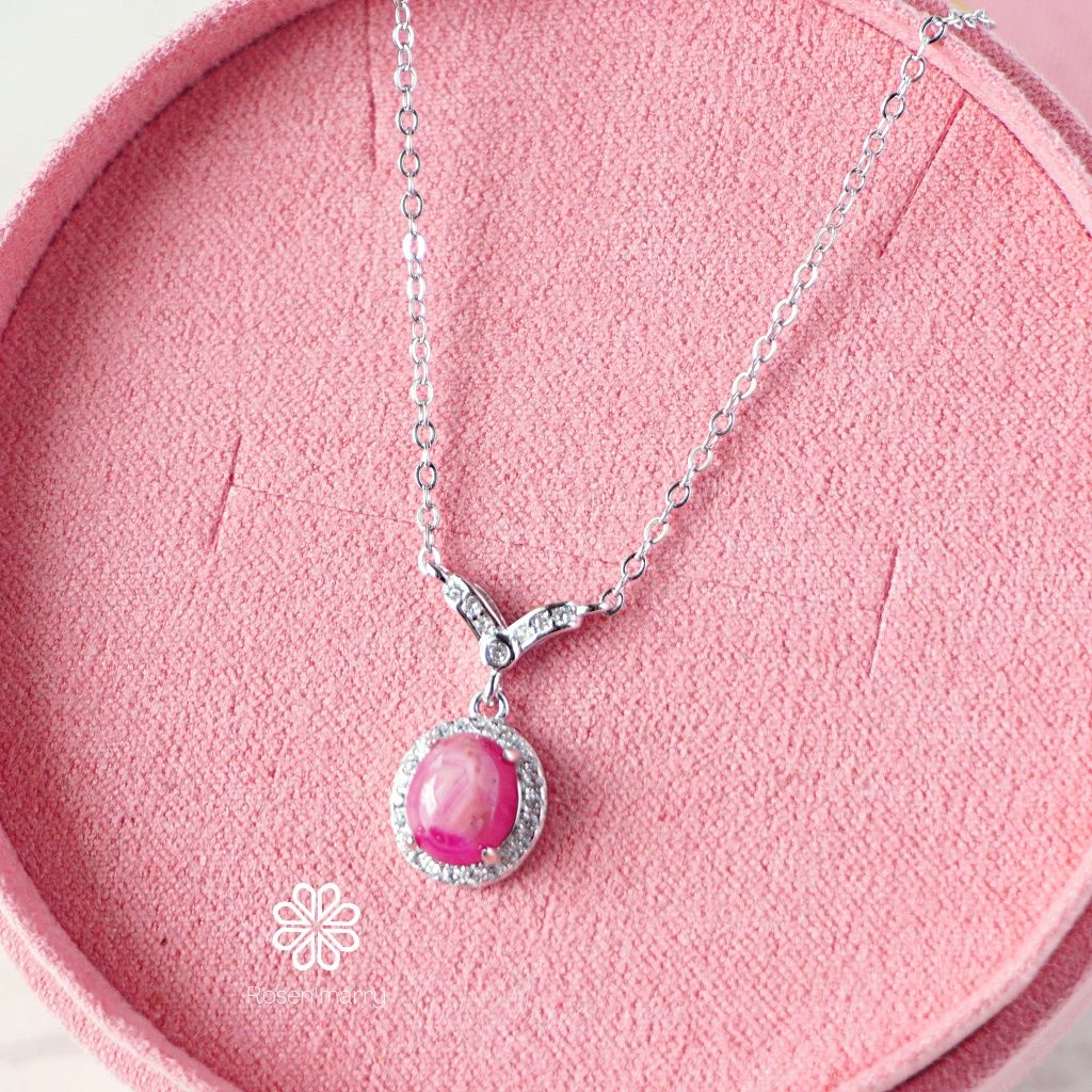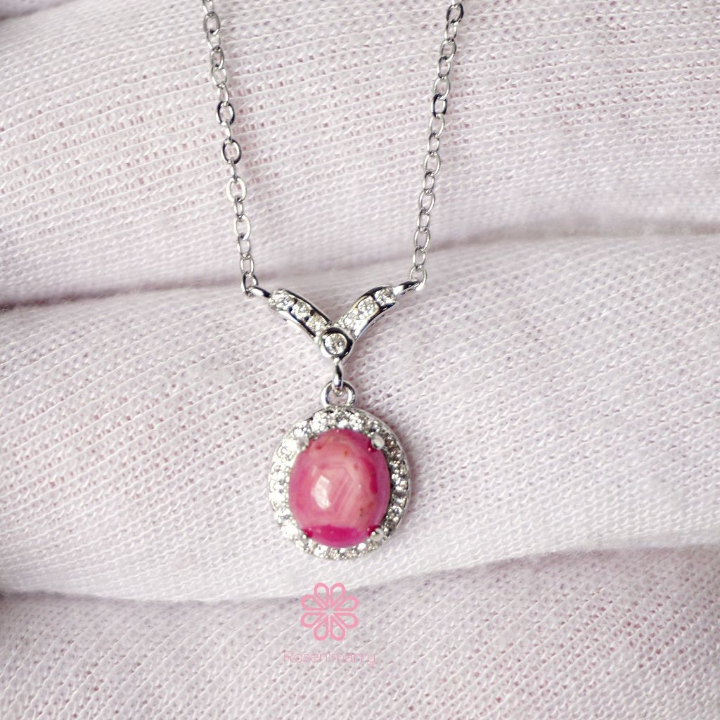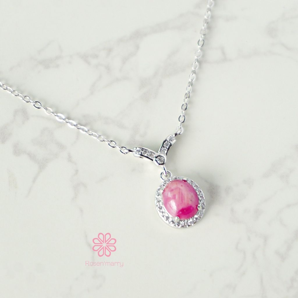 Natural Ruby Necklace Sterling Silver925 with whitegold plated. Gift for her.